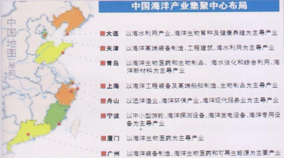 国家海洋局发布了首部记载我国海洋经济发展的综合性报告《中国海洋经济发展报告(2013)》。报告显示,中国自北向南形成了大连、天津、青岛、上海等在内的八大海洋产业集聚中心,各自拥有明确的国家重点扶植区域指向。业内表示,我国海洋产业集聚中心的逐步明